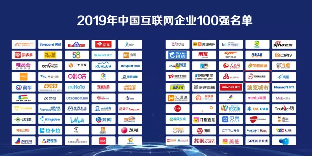 2019年8月14日,中國互聯網協會、工業和信息化部網絡安全產業發展中心(工業和信息化部信息中心)在2019年中國互聯網企業100強發布會暨百強企業高峰論壇上聯合發布了2019年中國互聯網企業100強榜單、互聯網成長型企業20強榜單和《2019年中國互聯網企業100強發展報告》。