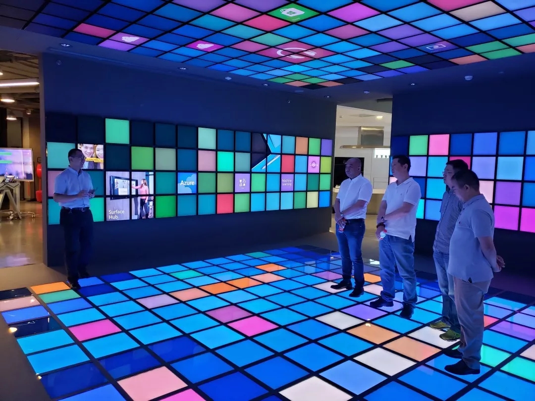2019年7月10日龍采企業董事長楊春波、龍采科技集團信息管理總裁兼企劃宣傳總裁姚響、百度項目總裁佘偉、龍采科技集團產品運營總裁黃能一行受邀參觀微軟中國總部。