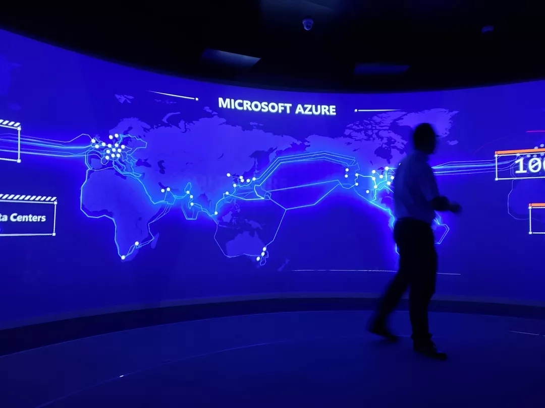 直觀呈現微軟全球范圍內強大的數據節點網絡以及通過AI技術對輿情進行分析的效果。