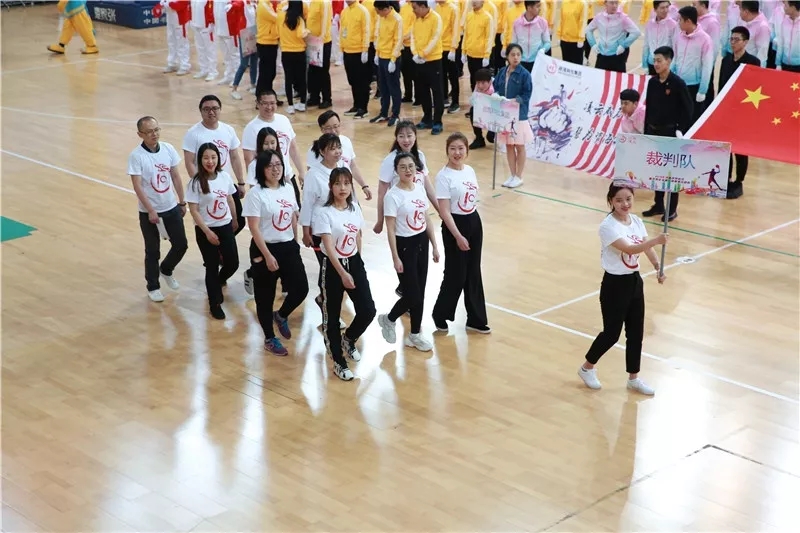 在主持人的介紹下,伴著嘹亮的運動員進行曲響起,龍采健兒精神抖擻,依次入場接受集團領導的檢閱。